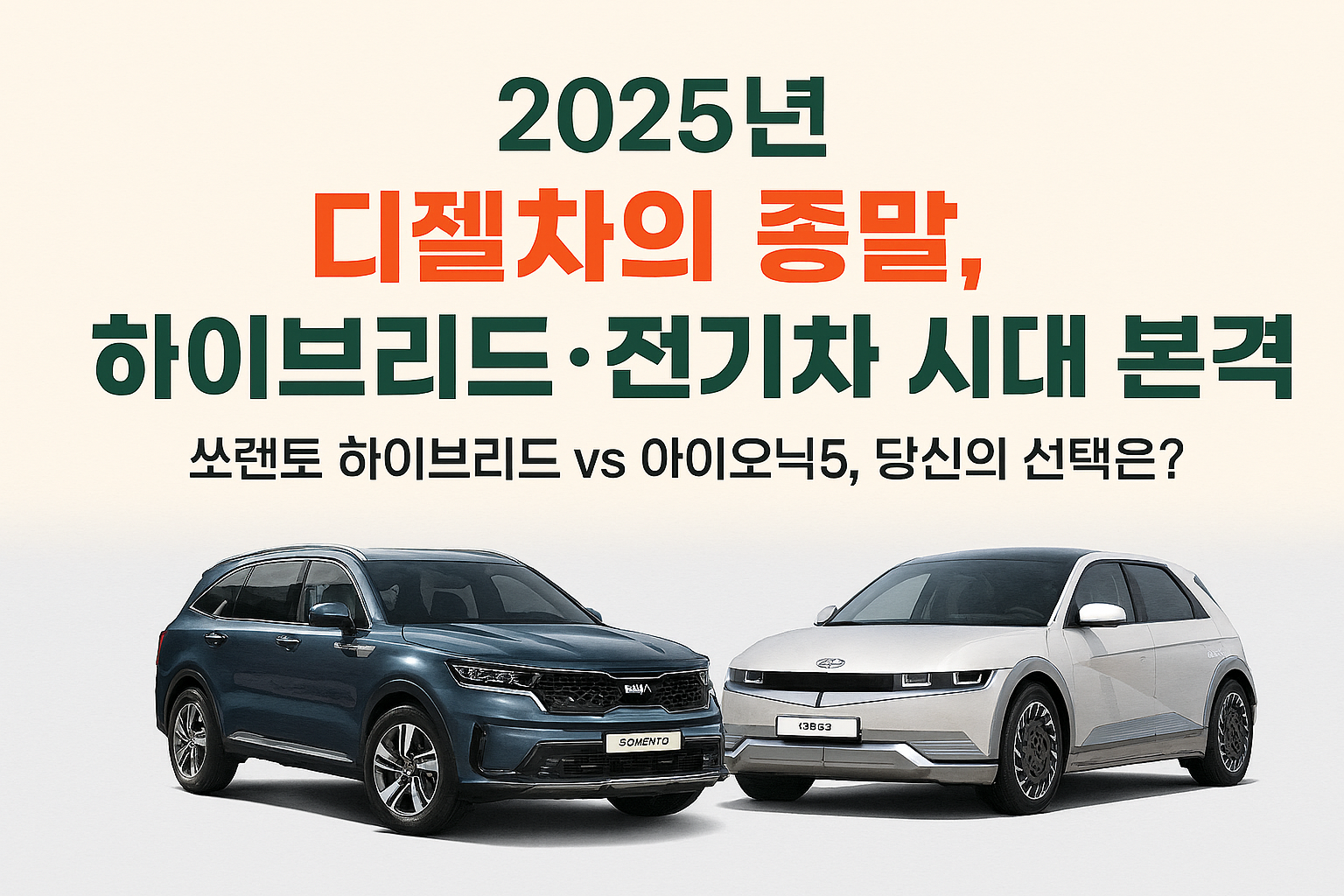쏘렌토 하이브리드는 현실적인 대안으로, 아이오닉5는 미래형 선택지로 자리잡고 있습니다.
